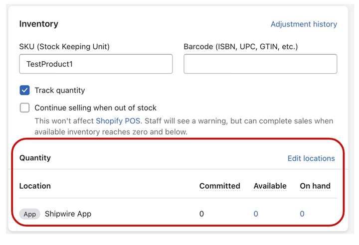 Note: We also recommend ensuring that the Continue selling when out of stock checkbox is not selected, as that will cause you to oversell in your Shopify store and get backorders in Shipwire.